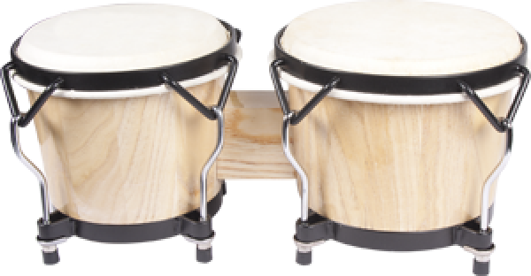 ◆ Latin bongos 6" + 7", black rim, natural finish.